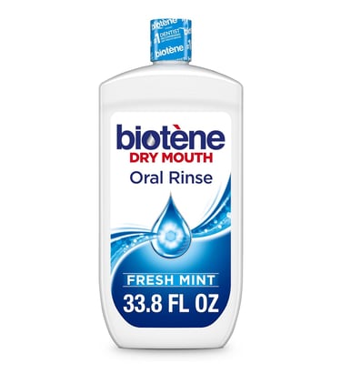 Biotène Oral Rinse helps relieve dry mouth symptoms with a gentle, alcohol-free formula you can use daily.