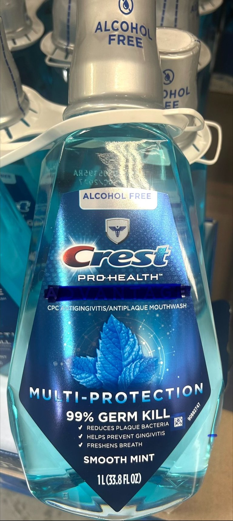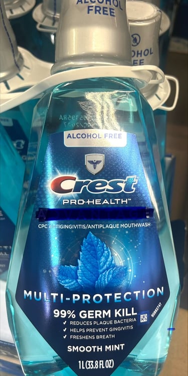 Protect and strengthen your smile with Crest Pro-Health Advanced alcohol-free mouthwash. This multi-action formula helps fight cavities, support gum health, and strengthen enamel while delivering a clean, fresh feeling—without the burn.