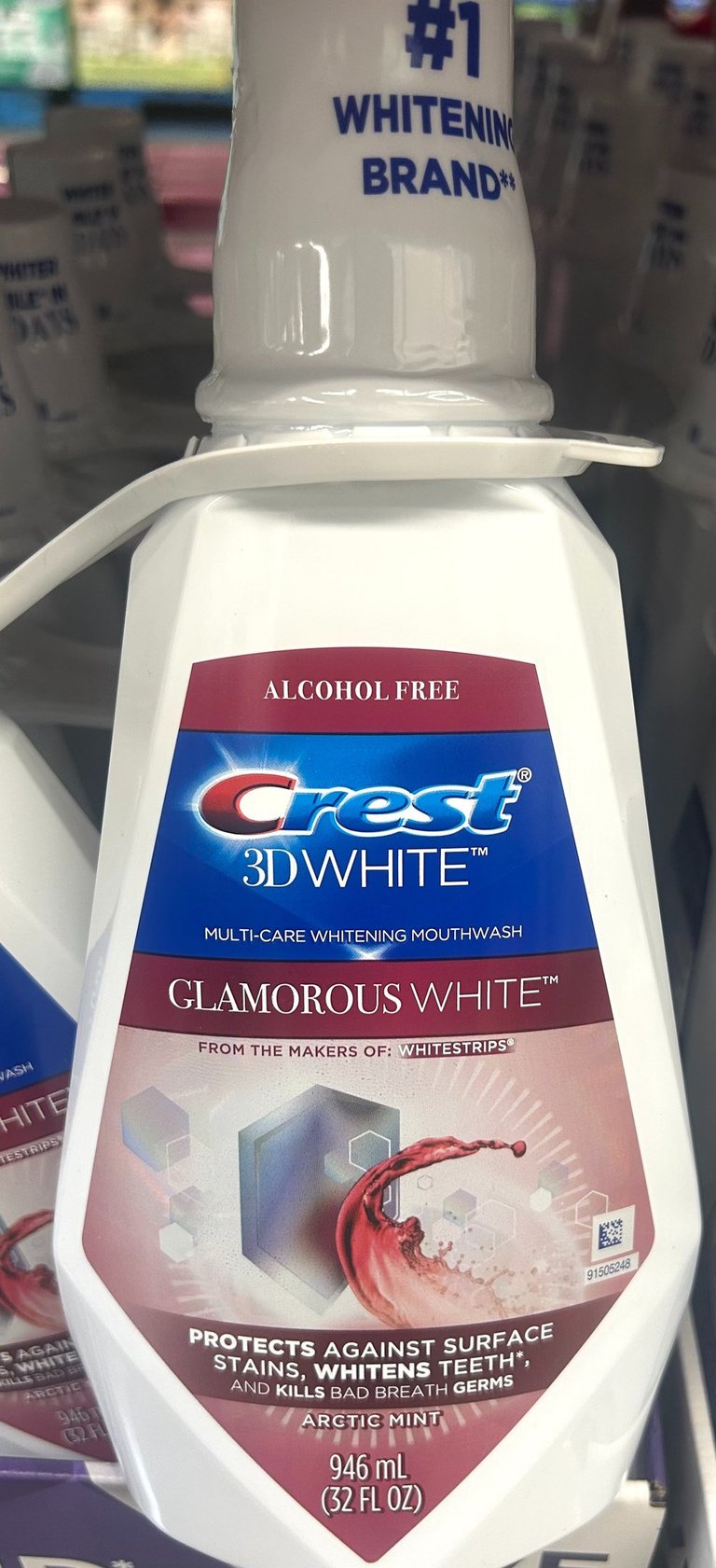 Whiten and refresh with Crest 3D White Glamorous White alcohol-free mouthwash. This enamel-safe formula helps lift surface stains, brighten your smile, and protect teeth while leaving your breath noticeably fresher.
